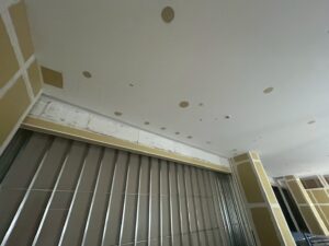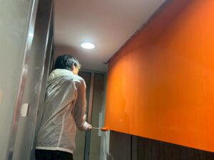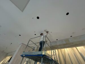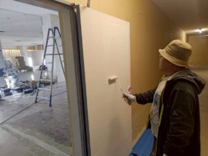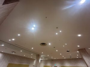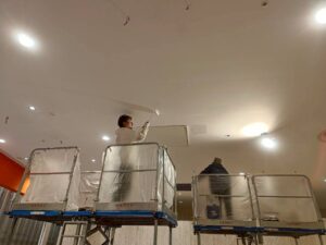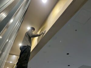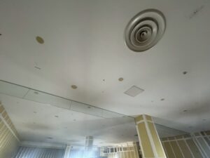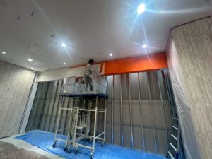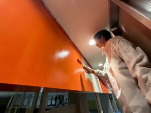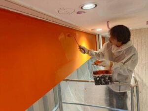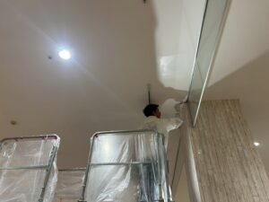 所々塗装が剥がれていたり、照明器具の交換もあったので穴の補修をしてから塗装で仕上げます。