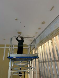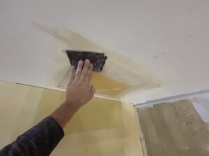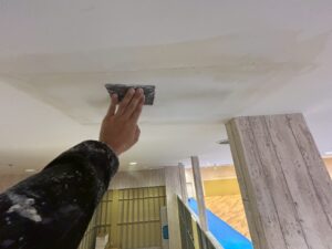 所々塗装が剥がれていたり、照明器具の交換もあったので穴の補修をしてから塗装で仕上げます。