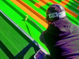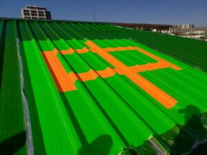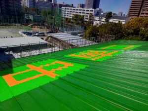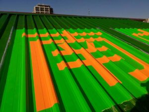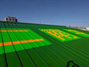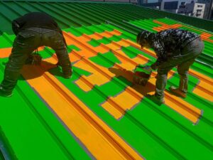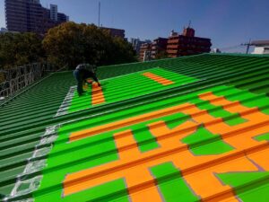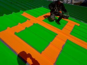 ただの屋根の塗装ではなく、屋根に文字を描く