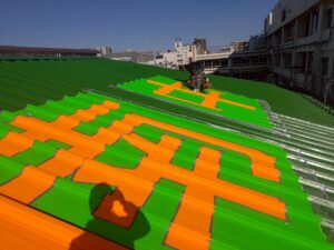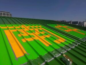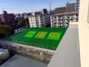 これは緊急の時や災害が発生した時の為にヘリから遠くから見えるようにする工事です。