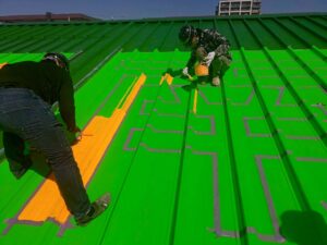 屋根の凹凸に合わせてラインを出すため、とても繊細な作業です(‘◇’)ゞ