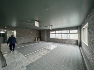 床面は水回り仕様となっており、排水や清掃性を考慮した施工となっております。