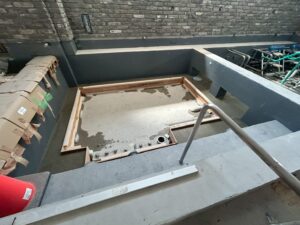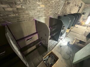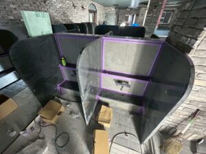 まずは、シャワーブース仕切り設置作業です❢