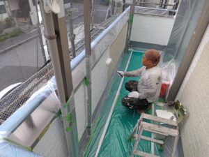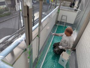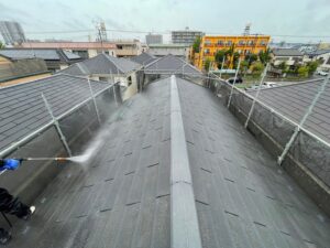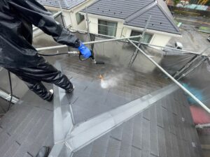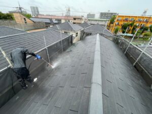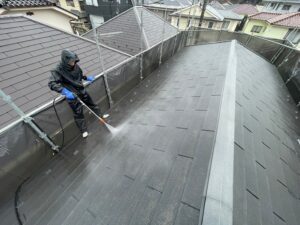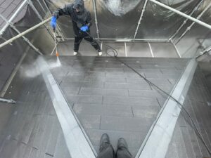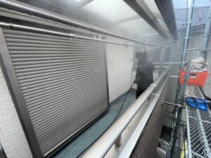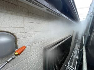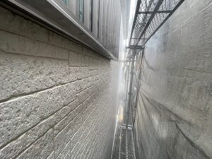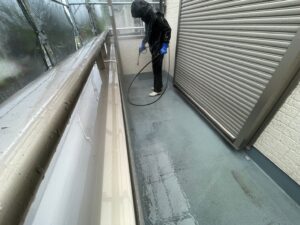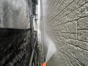 屋根だけでなく、壁やベランダなども同じく高圧洗浄を行います❢