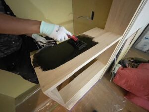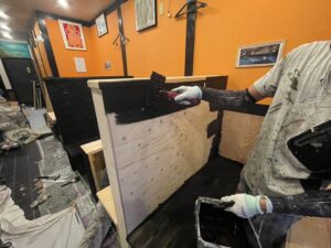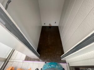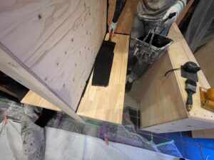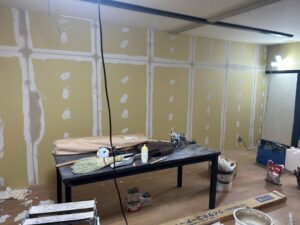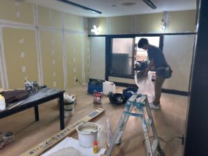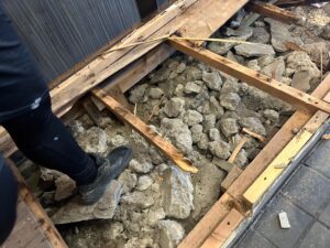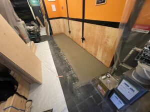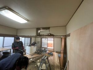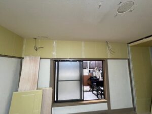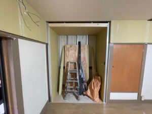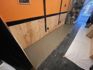 2階部分は新しくボードを貼り、小上がり部分は下地材を流し込んで平らにします❢