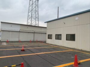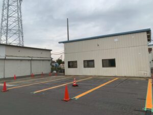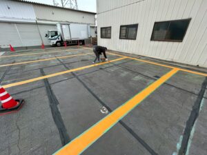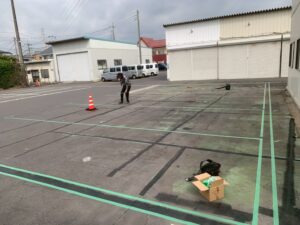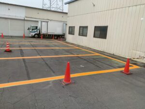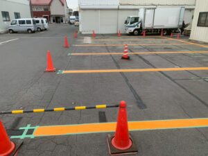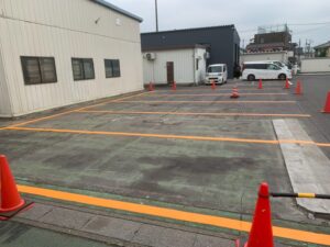 先日駐車場の区画線塗装工事を行いました❢