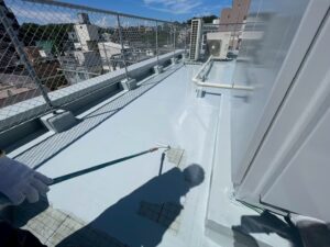 液状のウレタン樹脂を塗り広げて防水膜を形成する方法です!