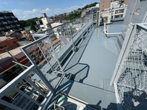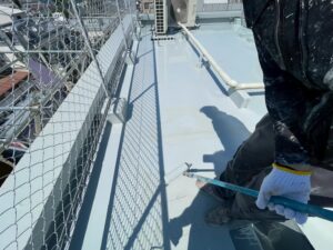柔軟性と密着性に優れていて、複雑な形状の屋根やバルコニーにも対応可能なため様々な現場で使用します✨また、建物の動きや温度の変化によるひび割れにも強く、耐久面も優れているのが特徴です👌